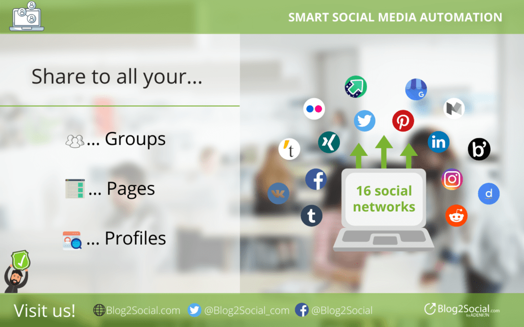 Promote your content across more than 16 popular social networks, profiles, pages, and groups on Facebook, Instagram, Twitter, LinkedIn, XING, Google My Business, and more. Tailor, schedule, share, and automate your social media content in one step and get more reach in less time. Trust in 600+ 5-star-ratings on WordPress.