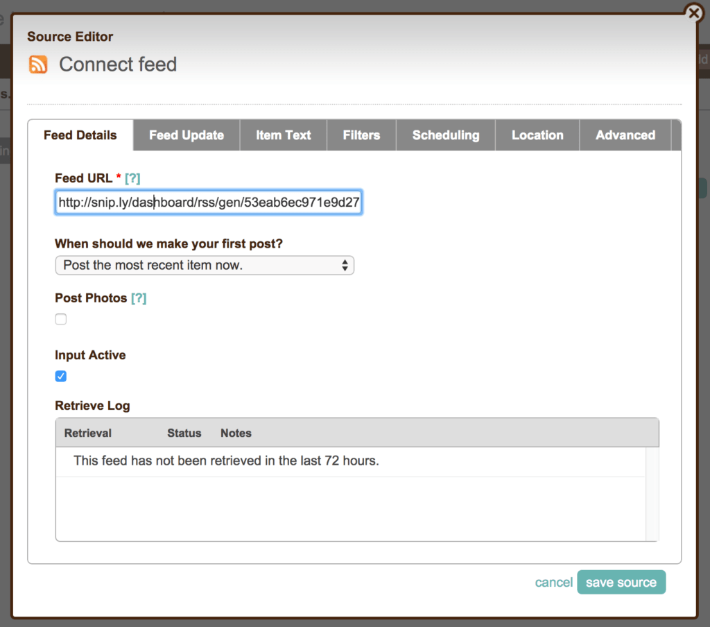 dlvr.it uses RSS to send content to your social media channels as it is created. With Sniply’s RSS feature, you can put Sniply links into these feeds so that you can share Snips just as you would normally share using dlvr.it. All you need to do is find the RSS feeds for your blog or favorite sites and then plug those feeds into Sniply. Sniply will give you output feeds, which you can plug into dlvr.it as new sources. dlvr.it will then post Sniply links with your call-to-action instead of plain-old, boring links.