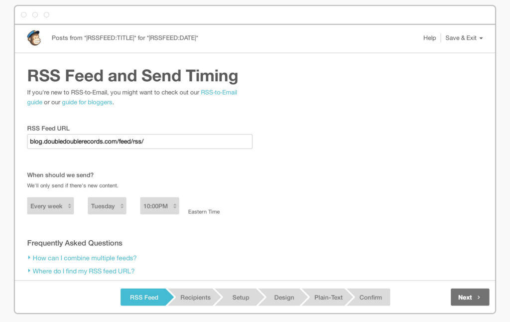 Mailchimp has a feature that allows you to send an email anytime you publish a new blog post, using RSS. With Sniply, you can use this to send an email to your subscribers anytime your blog is updated using Sniply links instead of plain-old, boring links. To set this up, all you have to do is find the RSS feed for your blog and plug the URL for that feed into Sniply. Sniply will give you an output feed, which you can plug into Mailchimp by following these directions. Boom! Every time new content is available on your blog, you will automatically send out an email that contains a brief description of the new content and a Sniply link to your post.