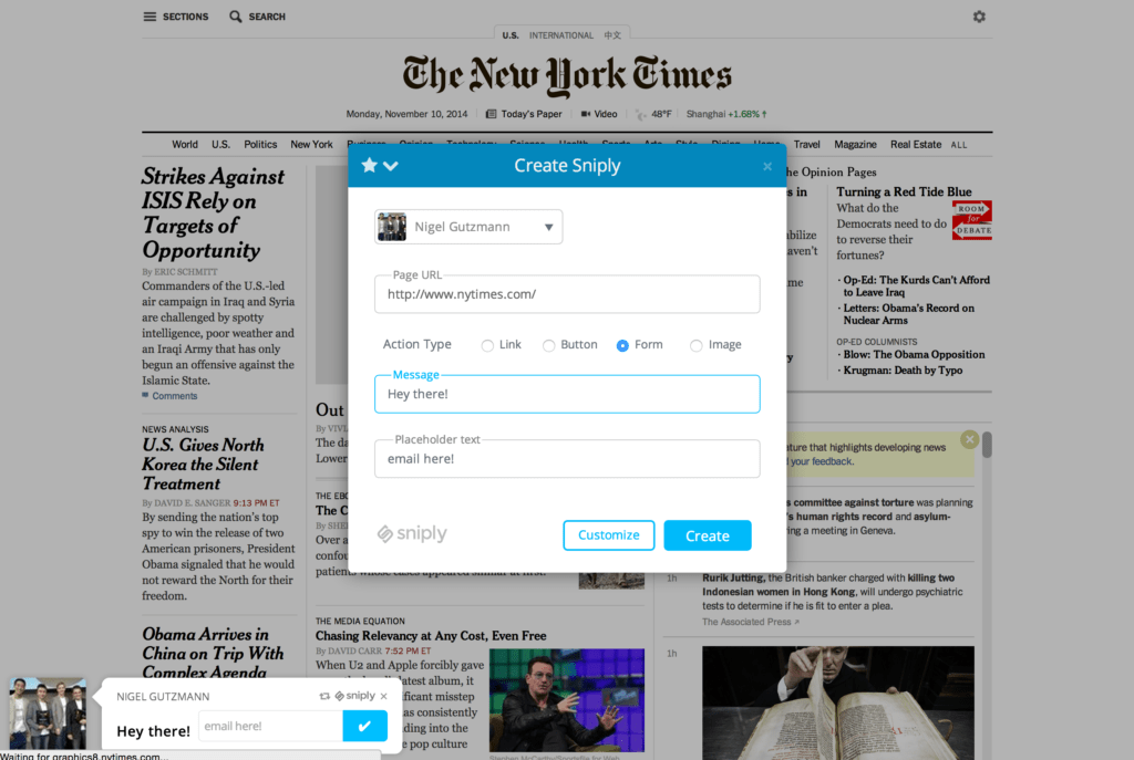 Sniply has a Bookmarklet that allows you to conveniently Snip links whenever you want. After installing the bookmarklet, as you browse the web, a Sniply bookmark will be ready and waiting for you at the top of your browser. Whenever you find an interesting page that you’d like to snip, just click on the bookmark and the Sniply creator will pop up and let you Snip the page right from where you are, no extra navigation required.