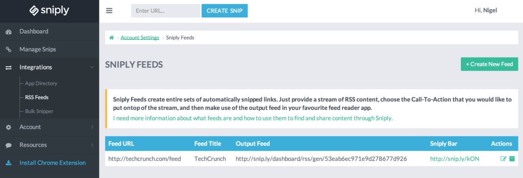 Sniply RSS feeds allow you to Snip entire feeds of content that can be imported into Zapier and sent to any web app. All you need to do is find the RSS feeds from your favorite websites and plug them into Sniply. Sniply will give you output feeds, which you can import into Zapier using RSS as the trigger app. This allows you to do all kinds of things with new pieces of content published to your favorite sites, including:
