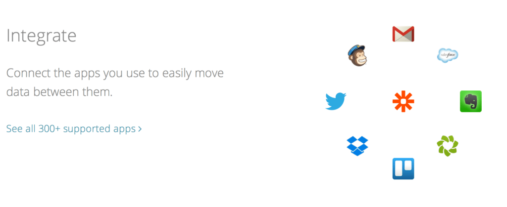 Zapier connects the web apps you use to easily move your data and automate tedious tasks. Zapier has support for over 300 of the most popular web apps, allowing all of these apps to be interconnected in interesting and productive ways. When an event happens in one of your apps, it can notify Zapier, and then Zapier can use the information about that event to perform a task in any other web app. Sniply can send your form submissions to Zapier so that you can import them into any other web app that you’d like to use.