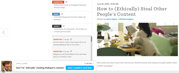 Now, if you’re going to join the choir and base your content marketing efforts on recycling content, how about at least doing it with a smile? It’s simple: share relevant content from other websites, but steal the attention of readers by kicking ass with a funny, sarcastic or curious comment using Sniply.