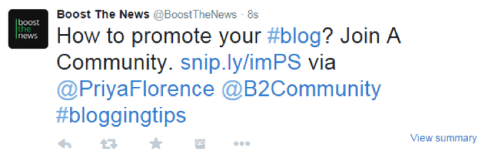 At Boost the News, we help businesses promote branded content created by bloggers. We have several content alerts, on keywords such as “influencer marketing” and “promote blog”. Using Buzzsumo, we received an alert on a trending article about blog promotion.