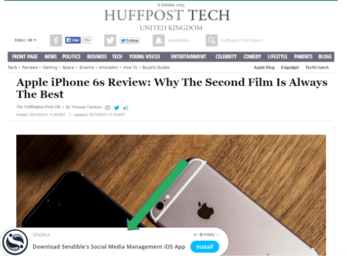 Let’s look at an example of how this would work. Sendible is trying to increase the downloading of their iOS companion application. If we want to target Apple users, we could curate and an article that is directly related to Apple users (a new Apple product, a review, any related content). Making sure we ‘snip’ the link, we are then able to put our branded related message on it. The linked content looks exactly the same as before, but now when our target audience read the article, they also receive a message on the page, prompting them to go ahead and download our application. All this without spending an extra penny.